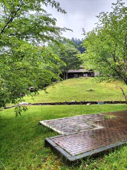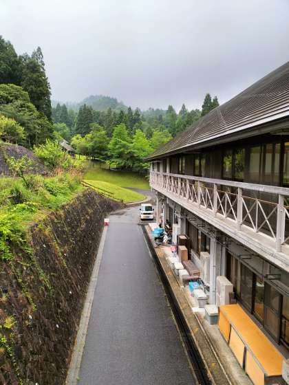 空が厚い雲に覆われ、雨が本格的に降っています。5年生のみんなはお風呂タイムです。お風呂の用意や入り方にも慣れました。