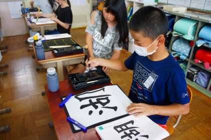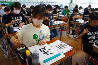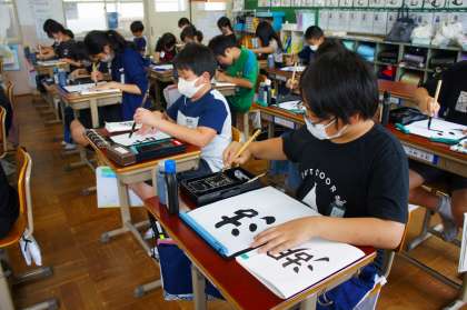 書写は書く時の姿勢も大切です。いつも以上に背筋を伸ばして取り組んでいる姿が見られました。