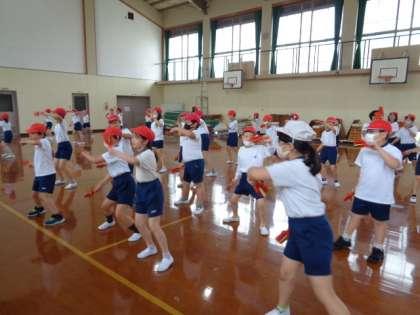 一部はみんなで動きを考えたり、掛け声を梅小路バージョンにしたり