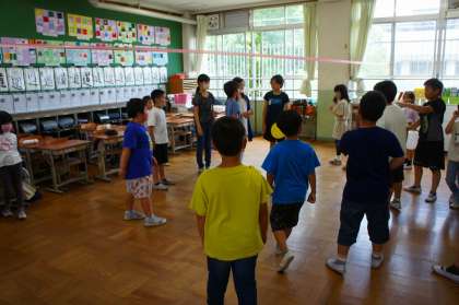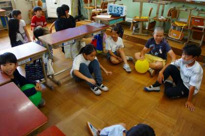 たて割り遊びの様子です。今回は、中遊びの様子をお届けします!風船バレーで楽しんでいるグループが多かったです。