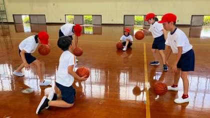 4年生は、初めてバスケットボールを始めたという人も多いので、とにかくボールに慣れることを頑張っています。