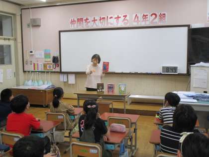 学校図書館司書の橋本先生にブックトークをしていただきました。今までに読んだことのない本にも挑戦してみたいという気持ちが芽生えたようです。