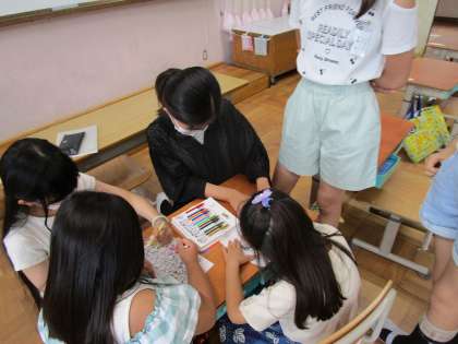 教室では、折り紙をしたり6年生が描いたぬり絵をしたりして楽しんでいました。