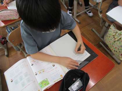 算数科「小数」では、小数のたし算・ひき算を筆算でやっていきました。小数点の位置に気をつけて、位をそろえることが大切だと気づくことができました。