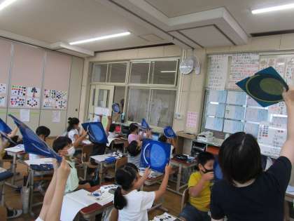 理科「星や月」では、星座早見の使い方を勉強しました。実際に使いながら、見える星座を確かめていきました。