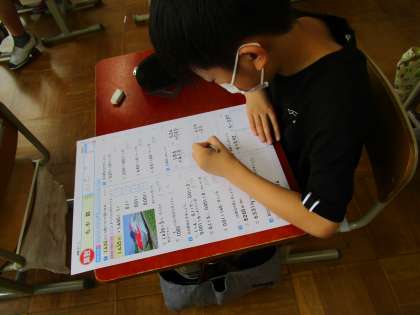 算数科「小数」のテストにチャレンジ。何度も見直しをすることで、細かなミスを減らしていくことができました。