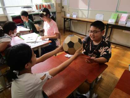 夏休みに取り組んだ自由課題の発表会をしました。友だちに一生懸命に語る子どもたち。聞く方も熱心に耳を傾けていました。