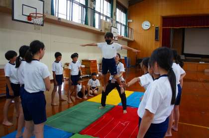 後半は、2曲目に予定している2人技、3人技の練習に取り掛かりました。まずは、何より安全第一。少人数でグループを組みながら、マットの上で少しずつ確認して挑戦です。