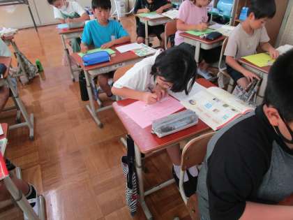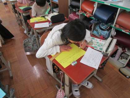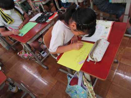 国語科「本は友達」では、ポップづくりに励みました。学校図書館司書の橋本先生にプレゼントしようと、丁寧に作り込んでいきました。