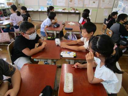 学活の時間に睡眠の大切さについて学びました。今までの自分の睡眠はどうだったか、これからどうしていくかを考えました。そして、考えたことをグループで交流し、他のグループに報告しに行きました。