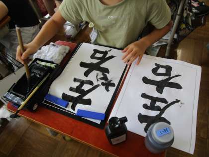 書写では「左右」の字に挑戦。筆順の違いや横画の長さの違いに気をつけて、字形を整えながら書いていきました。