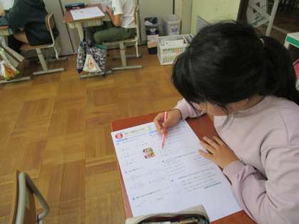 国語科では「漢字・言葉」のテストに挑戦しました。同じ意味をもつ言葉の問題にも上手く対応して答えることができました。
