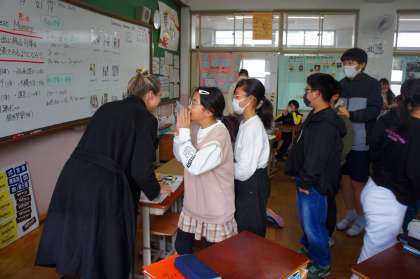 1時間目は、ALTのセレステ先生の“School Memory”を教えていただきました。その後、ゲームやクイズを通して、新しい単語を何度も発音したり覚えたりすることができました。