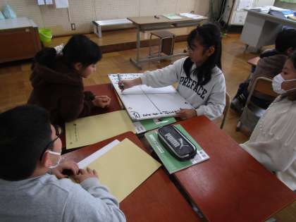 道徳科「絵はがきと切手」では、料金不足で絵はがきを送ってきた友人に、料金不足であることを告げるかどうか、お兄さんとお母さんの話を聞いて、どんなことを考えたのかをグループで話し合いました。どちらも友だちを思う気持ちは変わらないことを確かめた上で、今回は正直に伝えることのよさについて考えていきました。