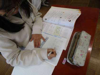 算数科「小数のかけ算やわり算」では、小数×2けたの整数の筆算に取り組みました。かける数が2けたになっても、筆算のやり方は1けたの時と変わらないことを学びました。