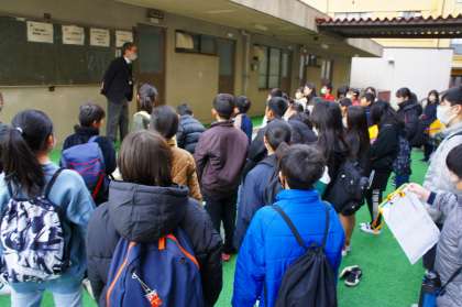 京都まなびの街 生き方探究館に到着しました。クラスごとに分かれて、殿堂学習と工房学習に取り組みます。しっかりとあいさつをして入館することができました。