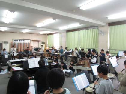 梅小路コンサートに向けて、学年で練習を始めました。演奏の仕方が少し複雑でしたが、みんなで確かめ合って、最初から最後まで通していくことができるようになりました。