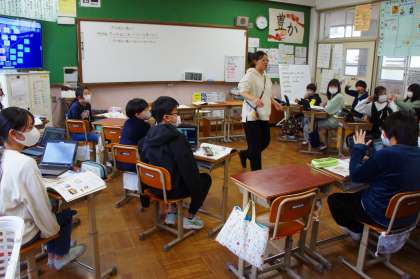 寒さがいよいよ厳しくなってきましたね。冬を明るく暖かく過ごすために工夫していることはないか、考えてみました。ロイロノートのY字チャートを使って、衣食住に分類しながら挙げていき、考えたことをグループやクラスで交流しました。「あっ、これも工夫なのか!」とたくさんの気づきがあったようです。