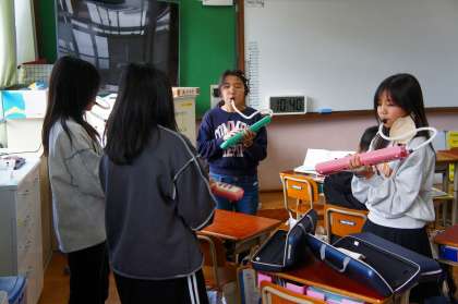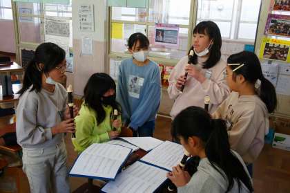 授業時間以外でも、休み時間に自主的に集まって練習する姿が見られます。最後の発表に向けて、気合十分です!