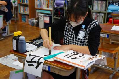 「伝統を守る」という5文字でしたが、「伝統」といえば、この毛筆書写も日本の大切な伝統です。現代において、筆を使って文字を書く機会は多くはありませんが、筆特有の味わいや用具を大切にする心をこれからも大切にしてほしいなと思います。