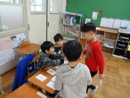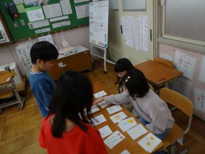 国語科「ものの名まえ」の学習で、まとめてつけた名前と、一つ一つの名前について学習してきた子どもたち。すきな○○やさんになりきって、お店やさんごっこをしました。
