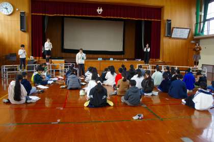 今日はリコーダー、歌、合奏の立ち位置を確認して、少しずつ合わせてみました。教室や音楽室で練習しているときとは違って、広い体育館に音を響かせて言葉を伝えなければなりません。「伝える」ということを意識して頑張ってほしいと思います。