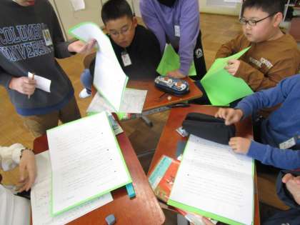 国語科「ウナギのなぞを追って」では、自分の興味の中心に沿って要約できるように、大事な言葉や文に線を引いていきました。そして、同じ興味をもった人たちで集まり、どこに着目したかを交流しました。