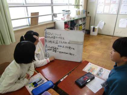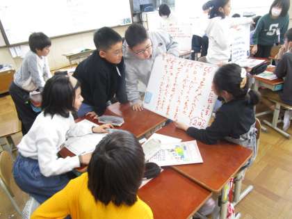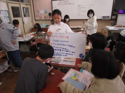 総合的な学習の時間で取り組んでいる「未来をになう梅っ子隊」。3年生にどんなことを伝えるか、整理していきました。