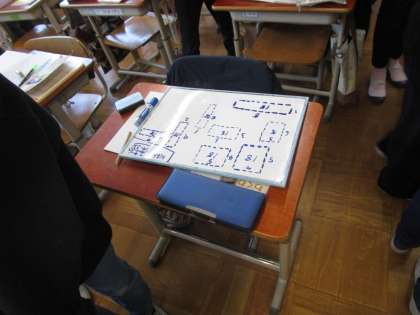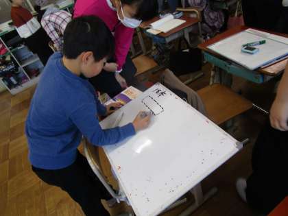 算数科「変わり方」では、18本の棒を使って長方形を作りました。ペアで話し合って、いろいろなパターンの長方形を考え出しました。