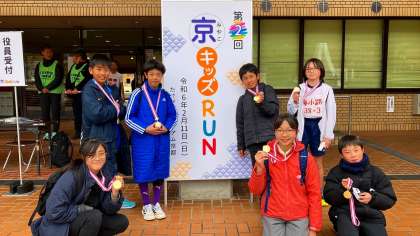 2月11日(日)、たけびしスタジアムにて開催された第2回京キッズRUNに、6年生の代表選手が出場しました。事前に校内選考会を実施して選出された代表選手。走ることができなかった仲間の分の気持ちも背負って、自分のベストを尽くそうと頑張っていました。
