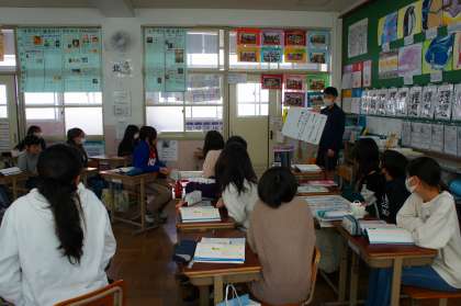卒業を前に、自分が今思うことを発表する学習です。今日は、モデルスピーチを聞いて見通しをもち、学習計画を立てました。