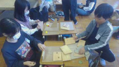 学校にある木片などを使って,「すみか」を作っていくための場づくりです。