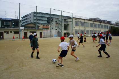 学習の最後に、6年生でサッカー大会を開きました。普段対戦することのない隣のクラスの友だちとゲームするチャンスということで、みんな張り切って臨みました。