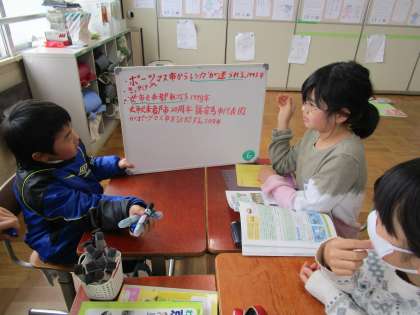 社会科「国際交流のさかんな舞鶴市」では、ポーツマス市と舞鶴市の交流について調べました。いつからどんなきっかけで行われているのか。資料をもとに調べていきました。