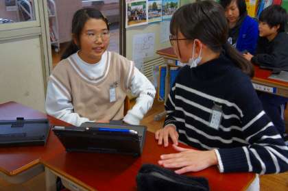 寒い冬を温かく過ごす工夫について、自分が調べたことを伝えるのはもちろん、友だちのロイロノートの画面も見ながら「えー!そうなんや!」「知らんかった。すごいなぁ!」と、共感的に聞く姿がたくさん見られました。