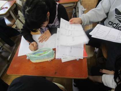 国語科「調べて話そう、生活調査隊」では、実施したアンケートを回収し、集計をしました。そこから何が分かるかを考えていきます。
