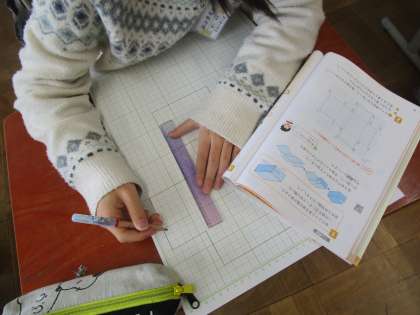 算数科「直方体と立方体」では、展開図の描き方を考えました。箱にする際に折る部分については、点線で描くことが大事なポイントでした。