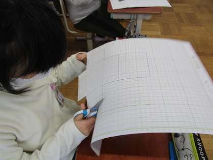 算数科「直方体と立方体」では、描いた展開図を組み立ててみました。しっかり箱の形になることに喜びを感じた子どもたち。中にはたくさん作る子も見られました。