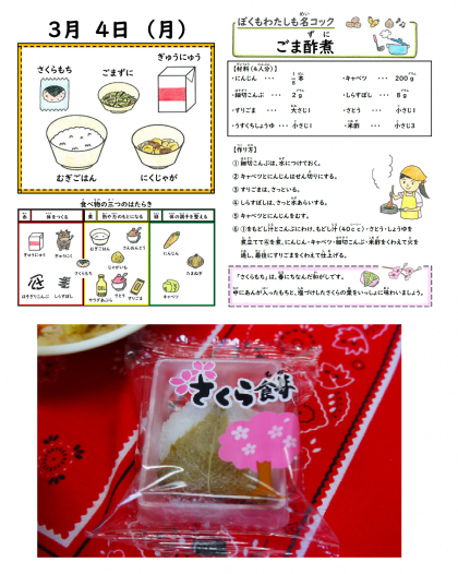 給食カレンダーには、ごま酢煮のレシピがのっていました。お家で作ってみるのもいいですね。