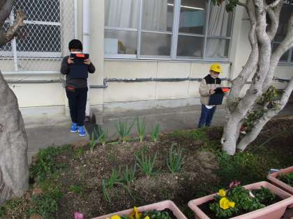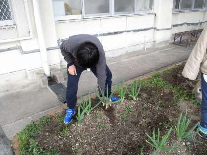 今日、育てていたねぎを収穫しました。まず、写真を撮ってから収穫しました。収穫したねぎを教室に持って行き、長さを測ったり、においを嗅いだり、色や形を観察したりしました。そして、見つけたことや感じたことを写真日記にしました。文字を入力するのもだいぶん慣れてきました。ねぎを見ながら、「これ、ラーメンに入れたらおいしそうやなあ。」とつぶやいていました。