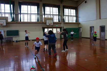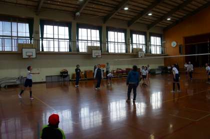 今日でバレーボール部の活動は終了。最後に教職員とお別れ試合を行いました。最初はなかなか入らなかったサーブも、試合が進むにつれて入るようになり、白熱したラリーが続く場面もありました。