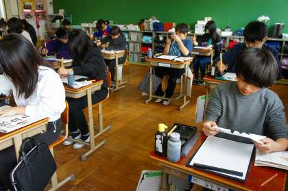 3年生から始めた毛筆書写も、4年間の総まとめとなりました。今まで学習してきたことを生かし、自分のめあてを立てて取り組みました。