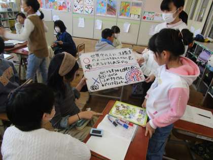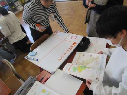 社会科「ゆたかな自然を生かす宮津市」では、天橋立を世界遺産にすることについて考えました。世界遺産にすることで有名になったり、観光客が増えたりする一方で、地元の人たちが困るのではないかという意見が出てきました。