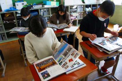 アルバムを眺めながら、友だちと笑い合う姿が微笑ましいです。卒業アルバムは、今日一度持ち帰ります。ご家庭でも、一緒に見ながら話題にしていただけると嬉しいです。
