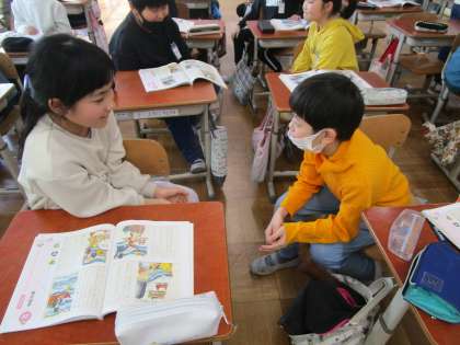 特別の教科道徳では、「金色の魚」のお話を使って、欲張る心について考えました。欲張って願いがエスカレートしていくと、どんな気持ちになるか、ロールプレイを通して考えました。