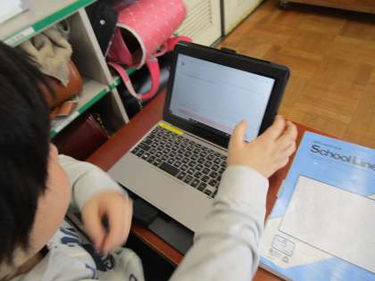 理科の学習では、今年度の理科の学習のふり返りをアンケート形式で行いました。タブレットに回答を入力していくパターンで、子どもたちはすらすらと回答していきました。