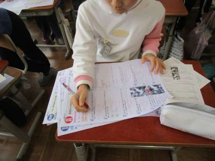 年度末に実施したテストの返却をしました。丁寧に直して、内容の理解に努めました。