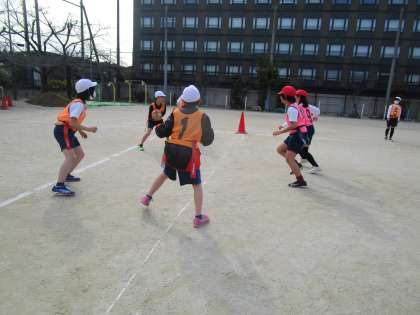体育科「タグラグビー」も最終回。はじめは慣れないルールに戸惑う子どもたちでしたが、今では本物のラグビーさながら、勢いよく走り込んでいく姿がたくさん見られました。
