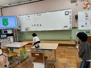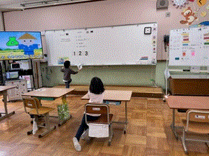算数の学習で、数字の歌を聴きました。その後、ホワイトボードに歌に合わせて10までの数字を順番に貼っていきました。「やったぁ〜!完成!!」と思いきや・・・あれれ?