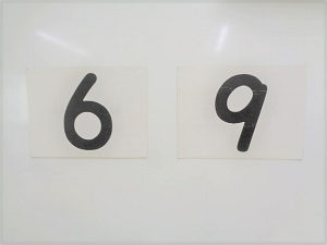 子どもたちも違和感に気づいた様子で考えています。よ〜く見てみると、「【6】と【9】が反対」と似ている数字の違いに気づいていました。